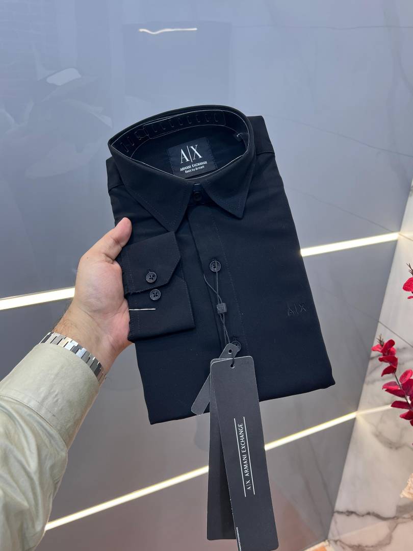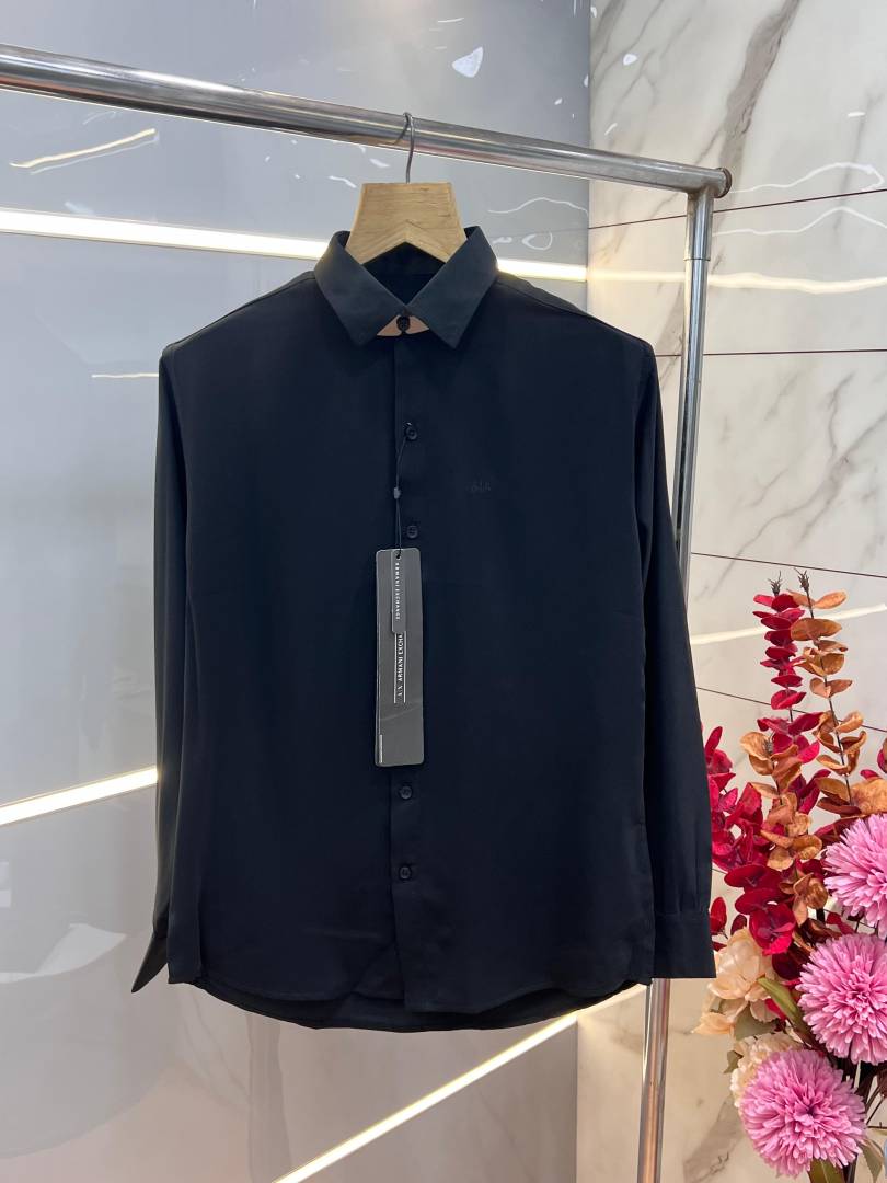 Arman i Exchange Black Premium 4way Stretchable Japanes Lycra Fabric Wrinkle Free Shirt with Brand Box 3238