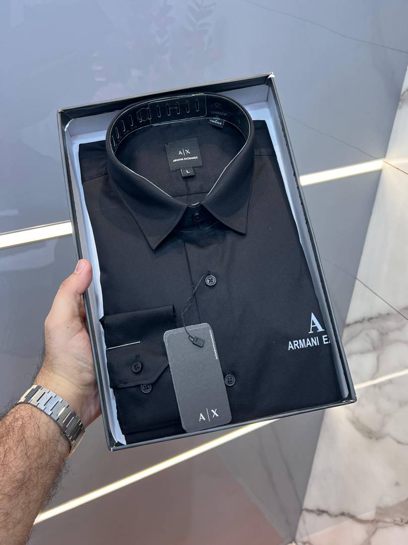 Arman i Exchange Black Premium Imported Reflective Printed Shirt with with custom Branded Button Tagging And Brand Packing 3285