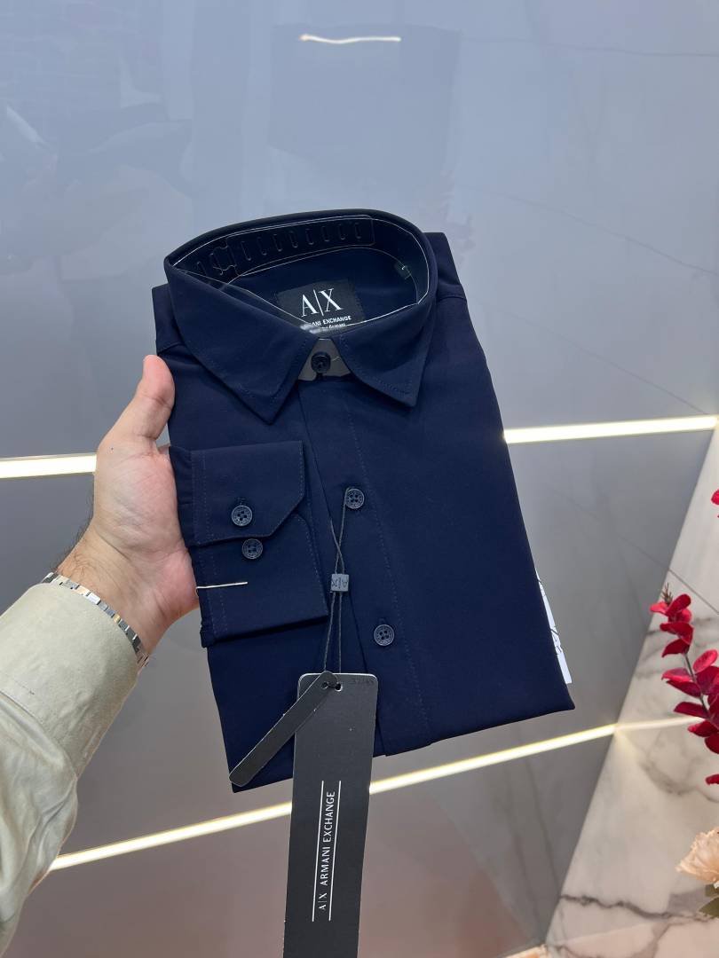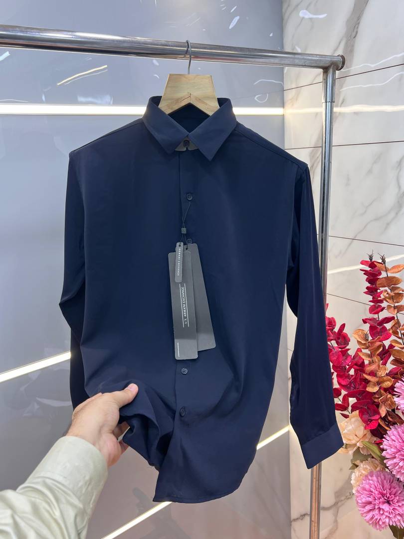 Arman i Exchange Navy Premium 4way Stretchable Japanes Lycra Fabric Wrinkle Free Shirt with Brand Box 3240