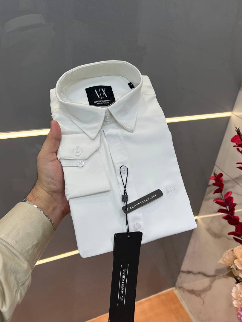 Arman i Exchange White Premium 4way Stretchable Japanes Lycra Fabric Wrinkle Free Shirt with Brand Box 3236